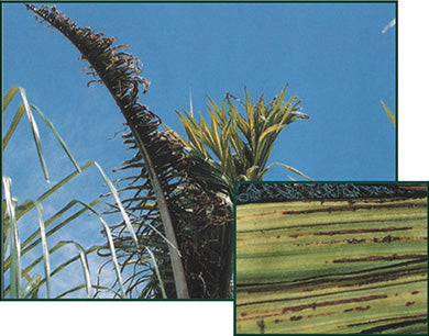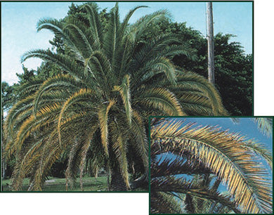 Problem: Palms with new emerging leaves that are yellowed, reduced in leaf size, or show a "frizzled" look.