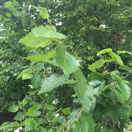 Now, to be clear, these images are of two different trees just to show you the huge contrast in what Lutz product has done for me. The weaker birch tree (with the chlorosis veins, yellowing on the leaves, and a little sparse) is on back side and close to the house. The leaching of the mortar into the soil causes the chlorosis to be worse and it will take a bit more time to get back to 100 % health but this time last year about 75 % of the leaves had fallen off and it looked like the end of October on June 1st.